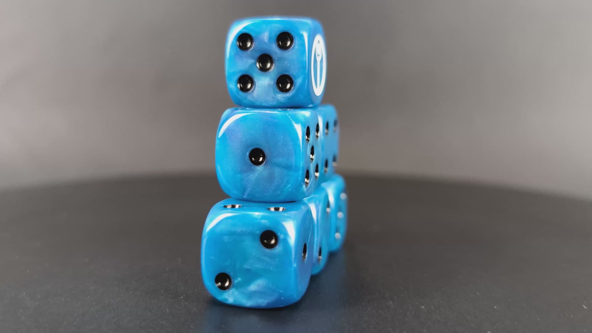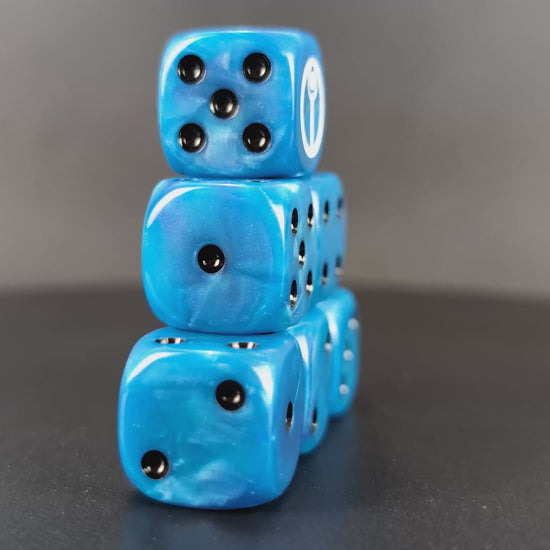 These 16mm resin D6 dice with round corners are precision tools for those who strike with tactical vision. With a sleek blue body, crisp white symbol, and sharp black pips, every throw is an act of focused firepower and calculated victory.
